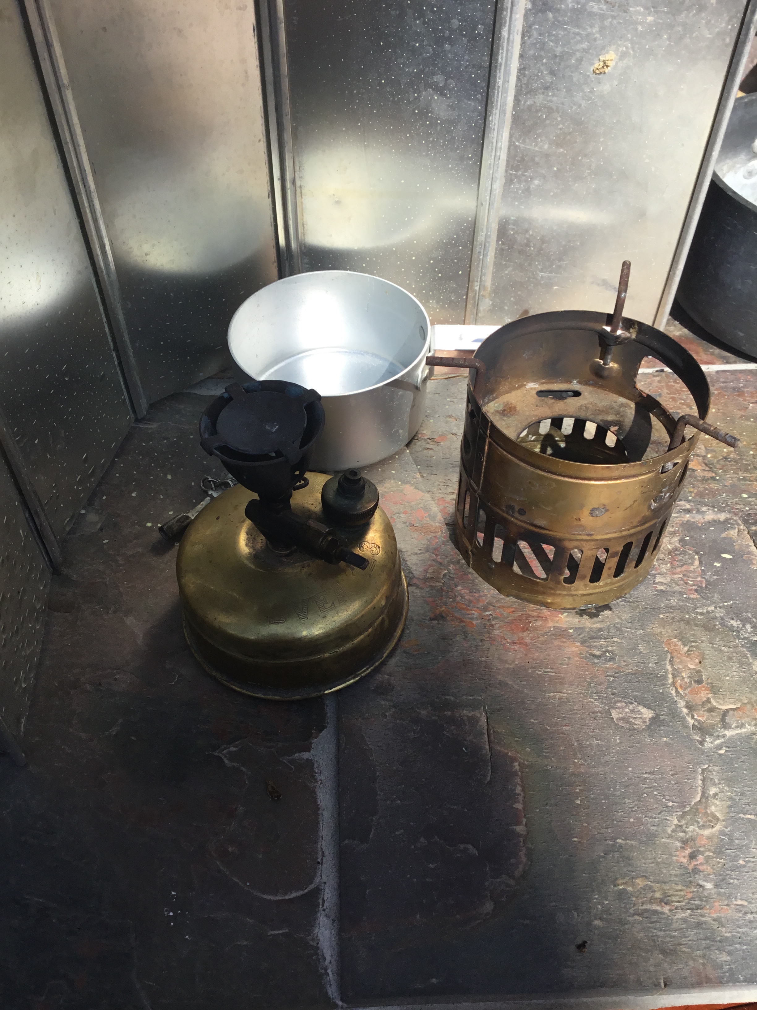 No one needs a 30,000 BTU kerosene burner all the time, so my go to outdoor stove is the venerable SVEA 123, based on a design which is well over a hundred years old. It’s so complex my version, the 123R, has TWO moving parts. In two decades, it has never needed a single repair.