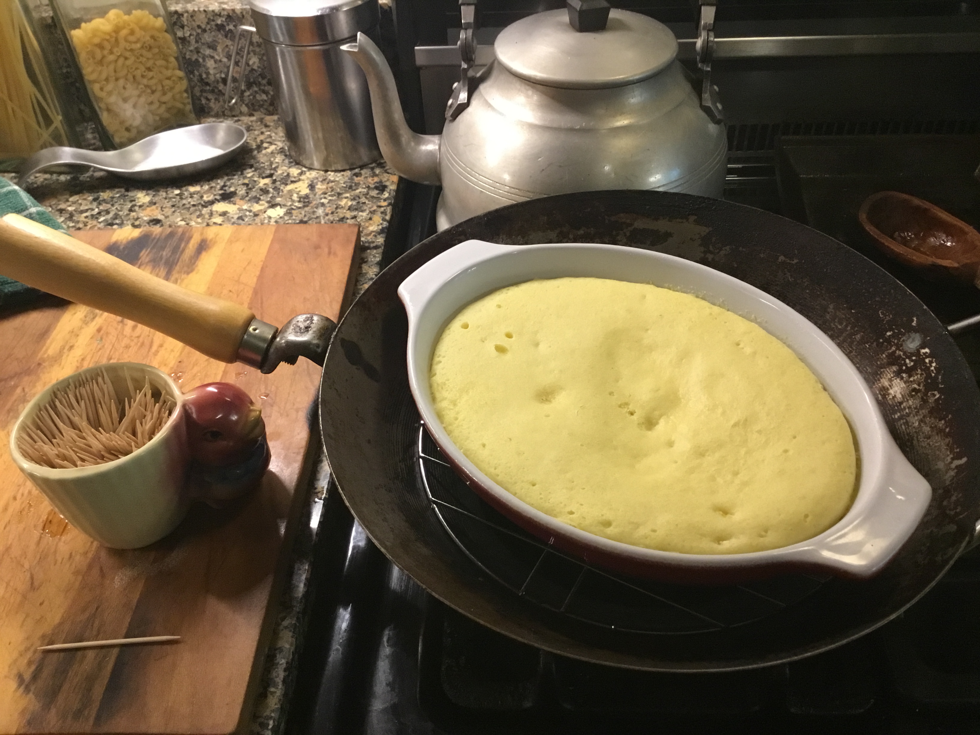 I bought a USA made wok from the Wok Shop in San Fran, but made my own lid out of an old mixing bowl. The knob is dogwood that I turned on my lathe. The lid is exactly the right size. It accommodates a steaming rack and a cake pan.