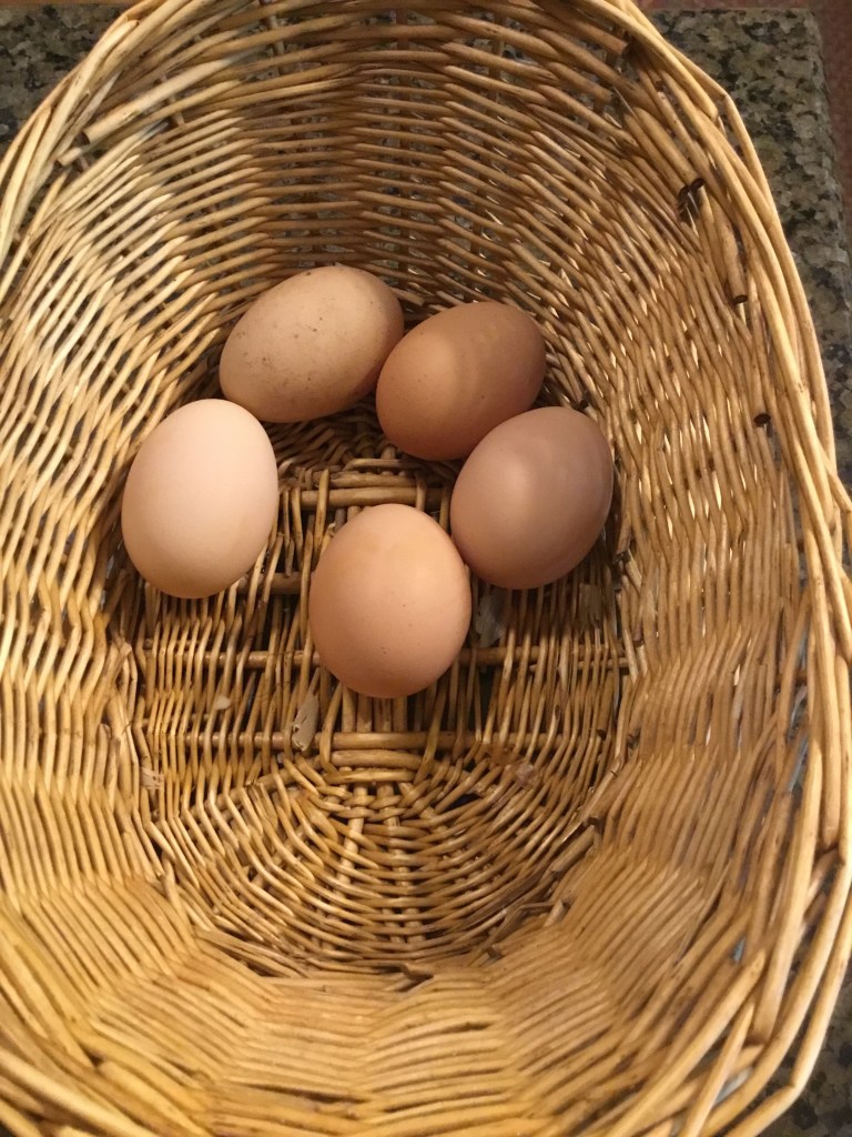 We had three eggs by nine this morning, and one was the first to be laid in the mailbox nest. The Browns are only beginning to lay, and according to the interwebs, they are egg layers supreme.