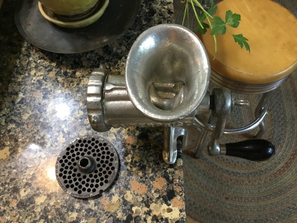 At any rate, this thing is ready to grind, and I love bright shiny things as well. The new model of these–they are still being made–is around a hundred bucks, and has an (ugh) epoxy finish on it. Although I have sworn on the Picayune Creole Cookbook that I will not buy another grinder, it will be hard to resist one in this condition. Especially if it’s the same price as this was–$6.