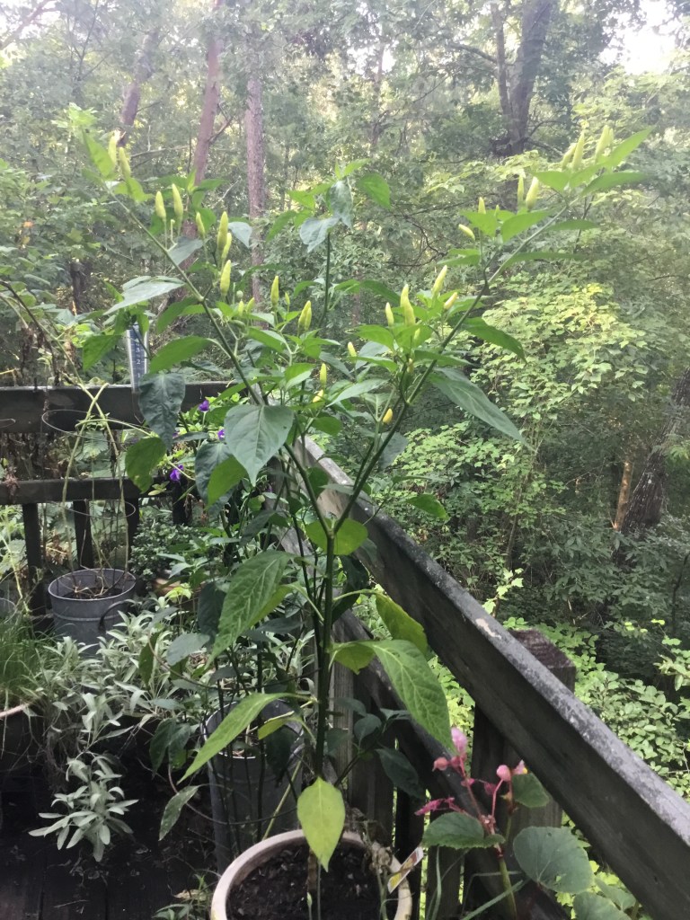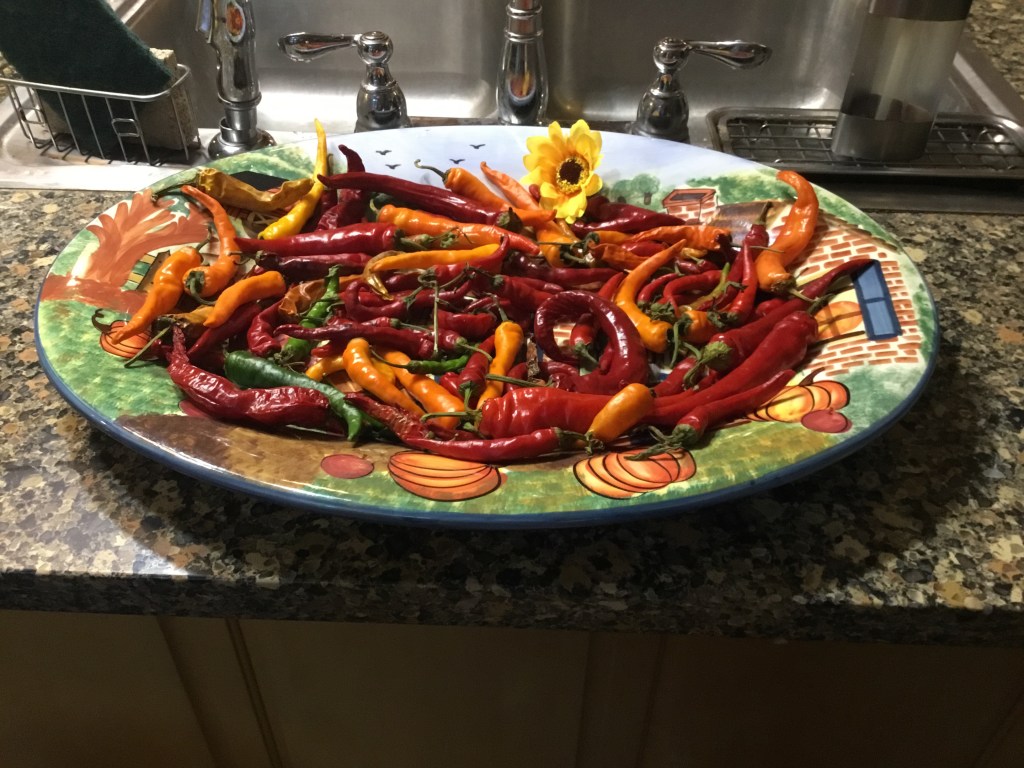 That little reddish orange pepper is the first ripe Tabasco. It’s probably as hot as that whole Serrano that is right below it. I don’t know how this will work, but my goal is to dry all these, and make multi-colored pepper flakes with them. Then I can make some psychedelic sausages.