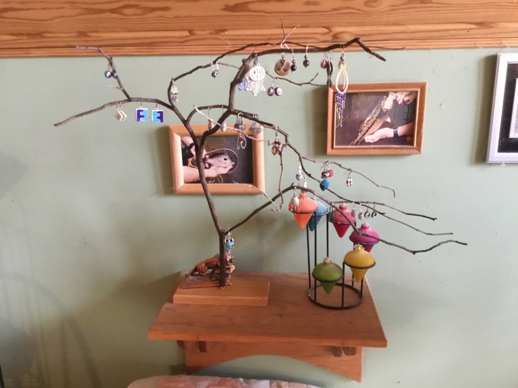 An earring rack for MJ to house just a few of her immense stash of earrings. It’s what to do with dead Mountain Laurel.