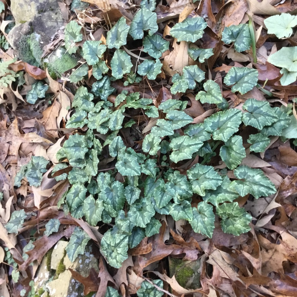 Temps in the sixties for most of next week, but the hardy Cyclamen are like Honey Badgers–they just don’t care. This has been blooming for the entire month of February, and it is the species coum. It is not as vigorous as the next one, which is in the process of spreading over our entire five acres.