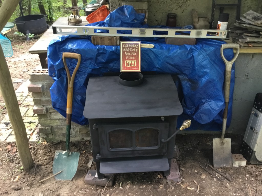 I’m going for one that will cold smoke and hot smoke. I will be able to build a fire in the smoke house, and one outside of the smoke house, thanks to the steel wood stove that was buried under my scrap pile. Moving it also helped clean out my workroom.