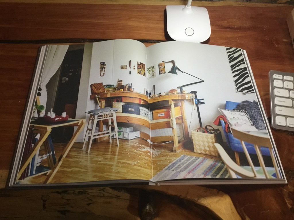 Although the book was written by two Frenchmen, it was first published in Swedish. It must have done well, as barely a year later the French edition appeared, which is a good thing, because I read very little Swedish. It is an excellent book, with excellent photography. And then, there it is–a picture of almost the same workbench that I have.