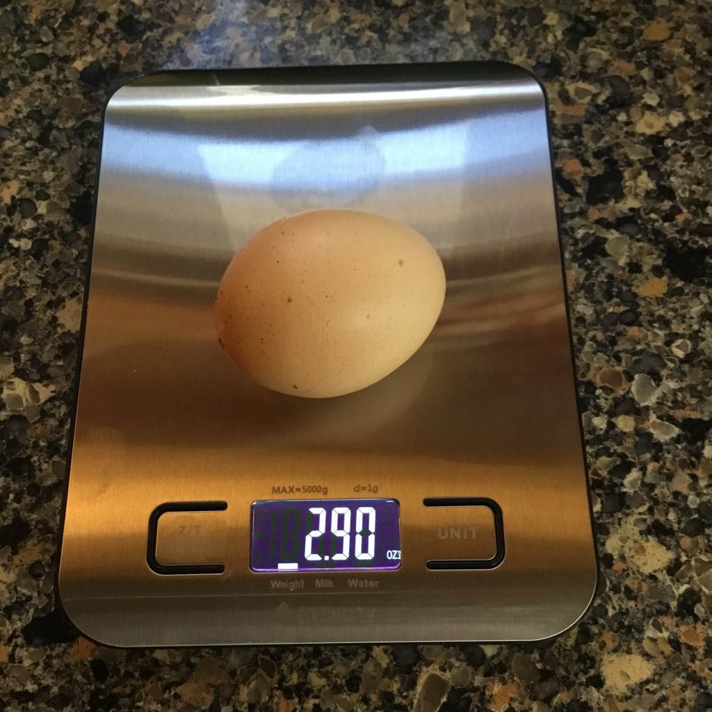 The Jumbo is considered a rarity in the commercial market, but two out of a random dozen of our eggs that I weighed were Jumbo eggs, and one was a 2x. This size was not at all unusual: