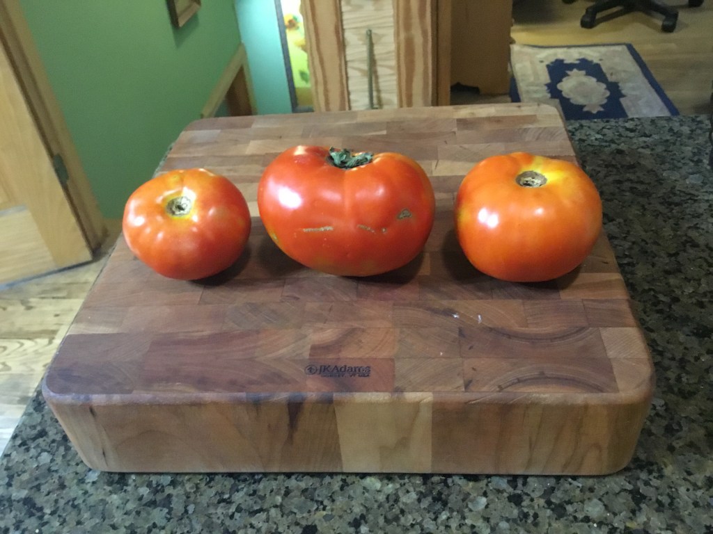 Why? These are really just tomatoes that have an odd shape or blemish of some variety. They won’t fetch the premium price of perfect slicing tomatoes, which can go for as much as a buck a pound. Used for canning, prettiness is second to taste, and since none of these will ever live to the entrance age of Miss America Tomato, quantity is the key. All tomatoes look the same, after being run through a food mill.