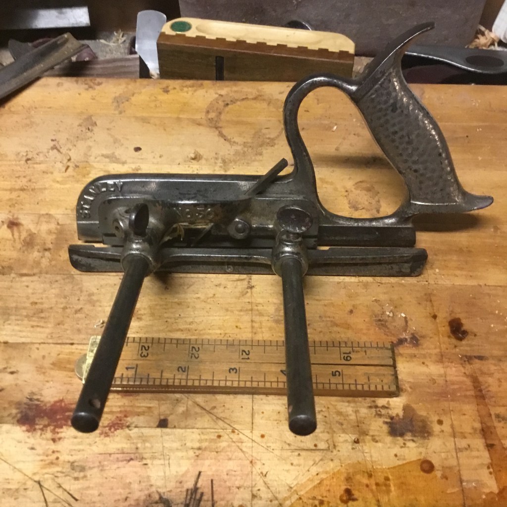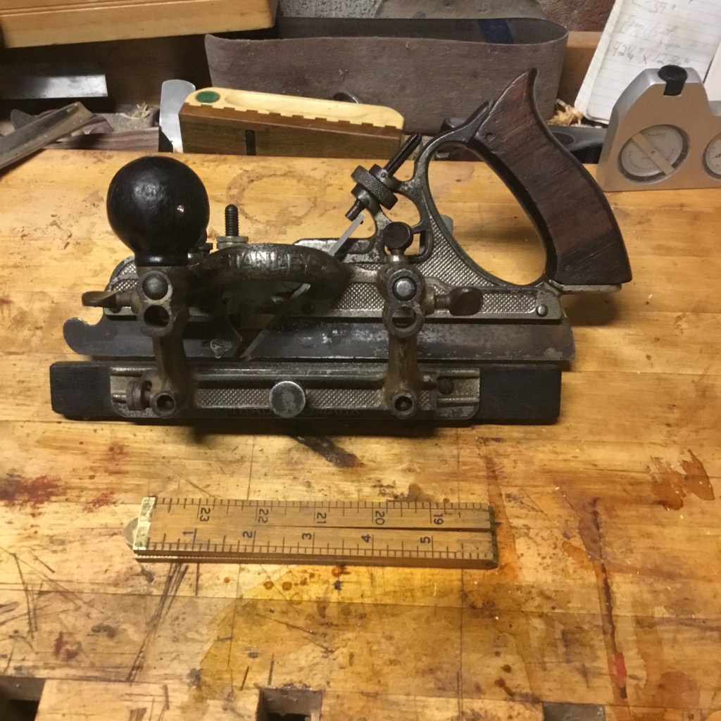 Justus Traut was one more inventor for the Stanley Tool Company. At one time he was known as the king of the patent, as his production of designs was so prolific. None, however, are as famous as his series of combination planes, two models of which are pictured here. The small one is a Stanley 50, and the two larger ones are the famous Stanley 45, though two versions made in different decades. Alright Mr. Demille, I’m ready for my closeup.