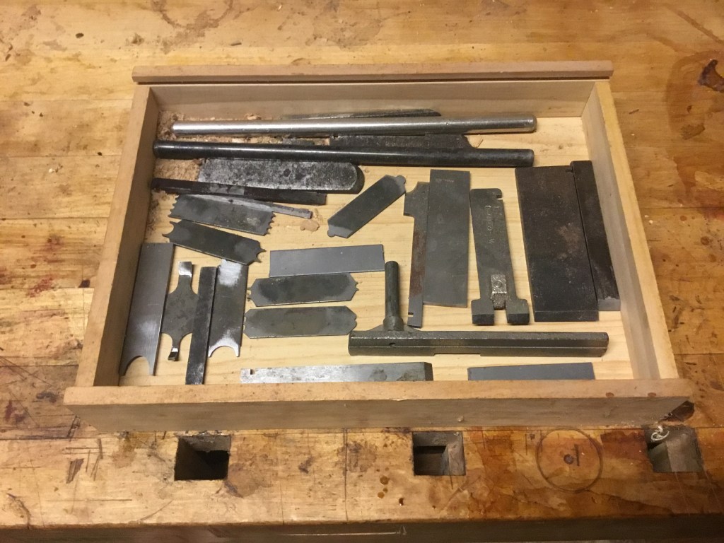 Those parts are for both the 45 and another Traut design, the Stanley 66 Hand Beader. While not technically a plane (it’s actually a “scratch stoch,” in that it scrapes instead of cuts), it does have multiple cutters, and I happen to have all of them. The cutter that is in the picture cuts reeds, which are multiple beads.