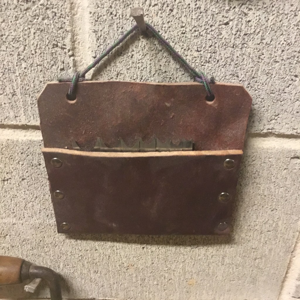 I made this leather pouch to keep these difficult to sharpen cutters from getting damaged in my box of parts. It also looks cool hanging on the wall of my shop.