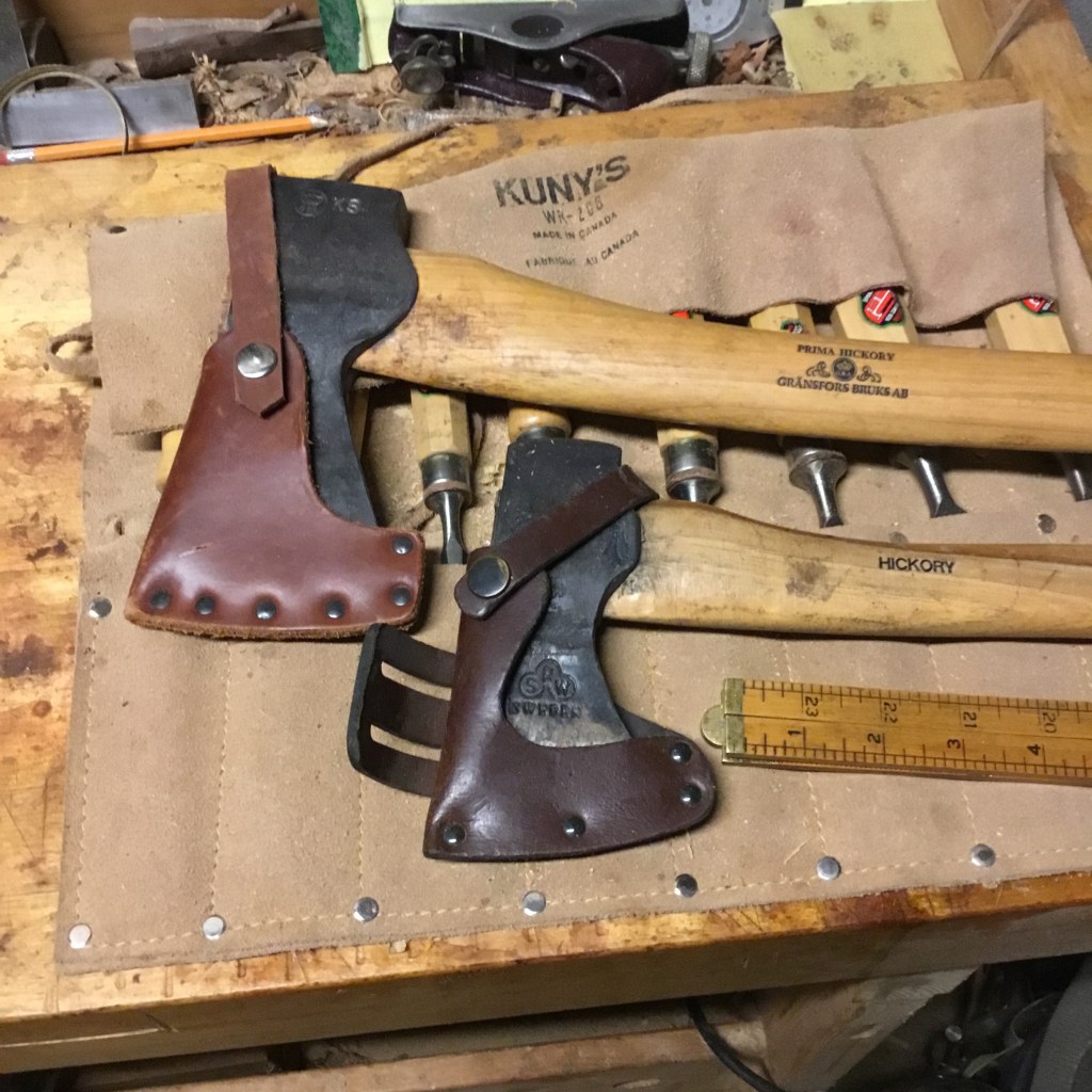 The larger axe is a forest axe from Granfors, a present from one of my past employers. It’s deadly. Just ask my left leg.